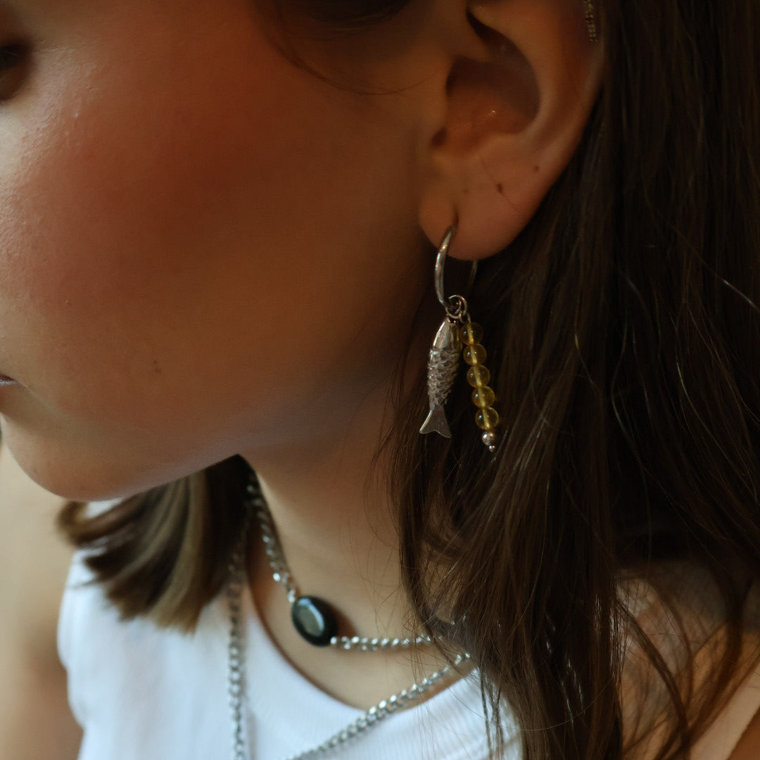 Hoops y dije de acero inoxidable, cuarzos en tonos amarillo.