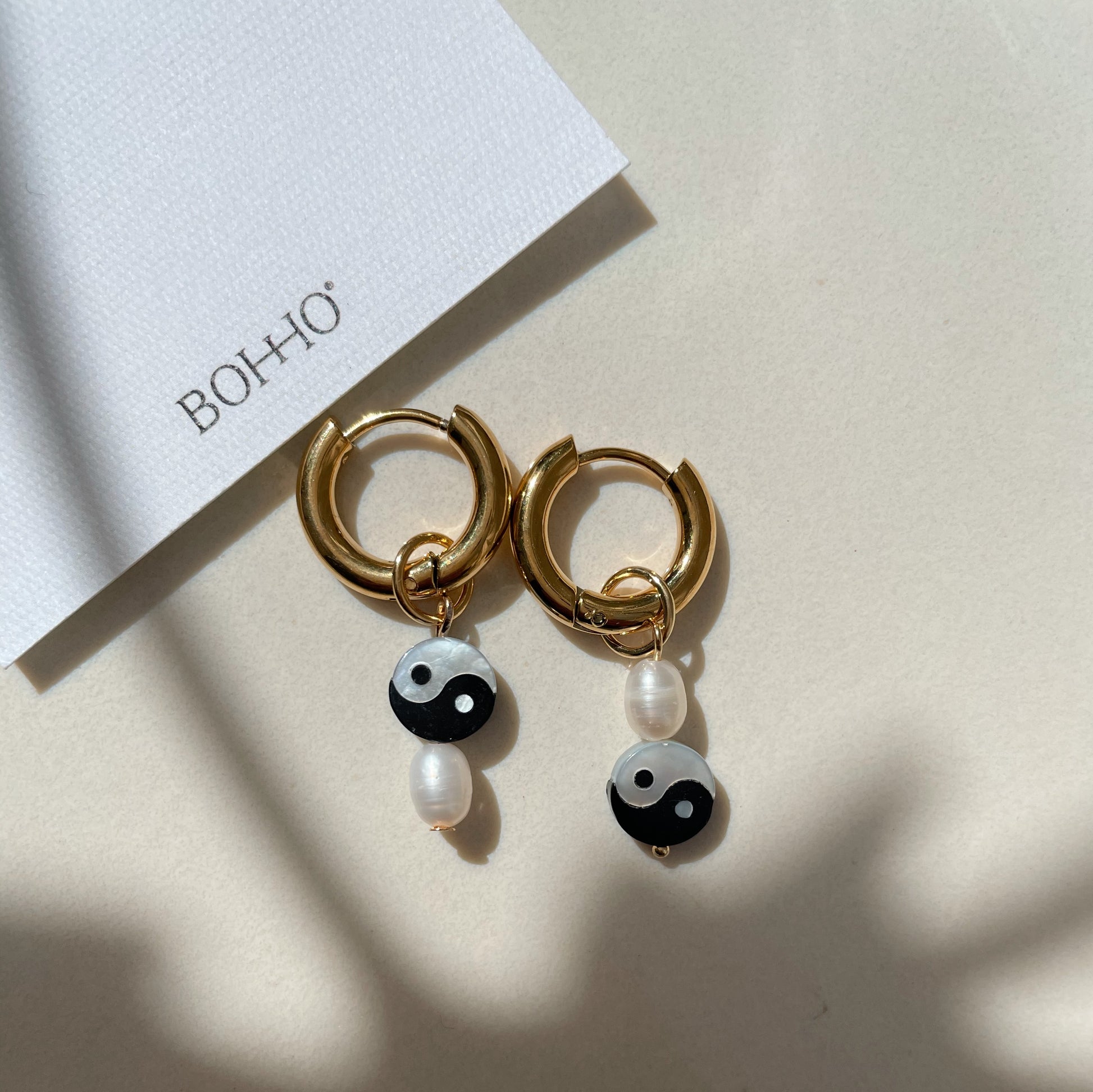 Huggies de acero inoxidable, medida 14x16 mm. Dije de Yin Yang.